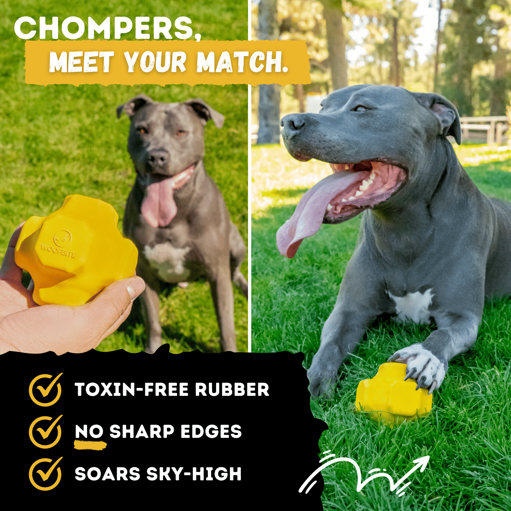 - Promote Healthy Chewing Habits - WOOFBITE toys are designed to turn destructive chewers into engaged players. Their irresistible shape, enticing bounce, and rugged construction provide great dental health benefits, whether fetching or power chewing. Perfect for mental stimulation, exercise, and training, they keep your dog happy and healthy.